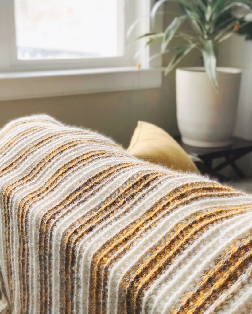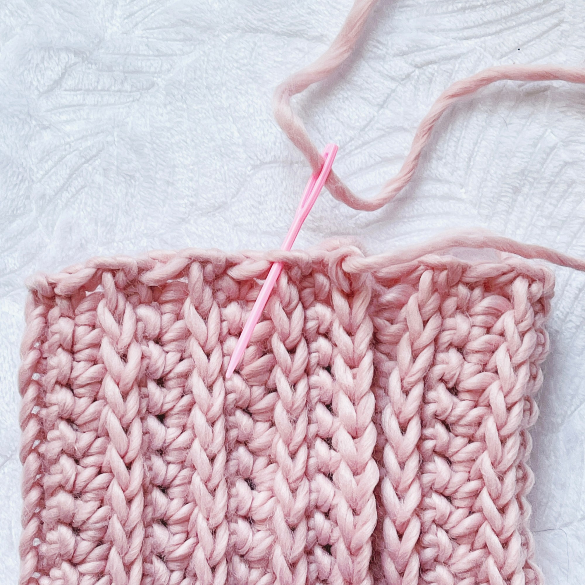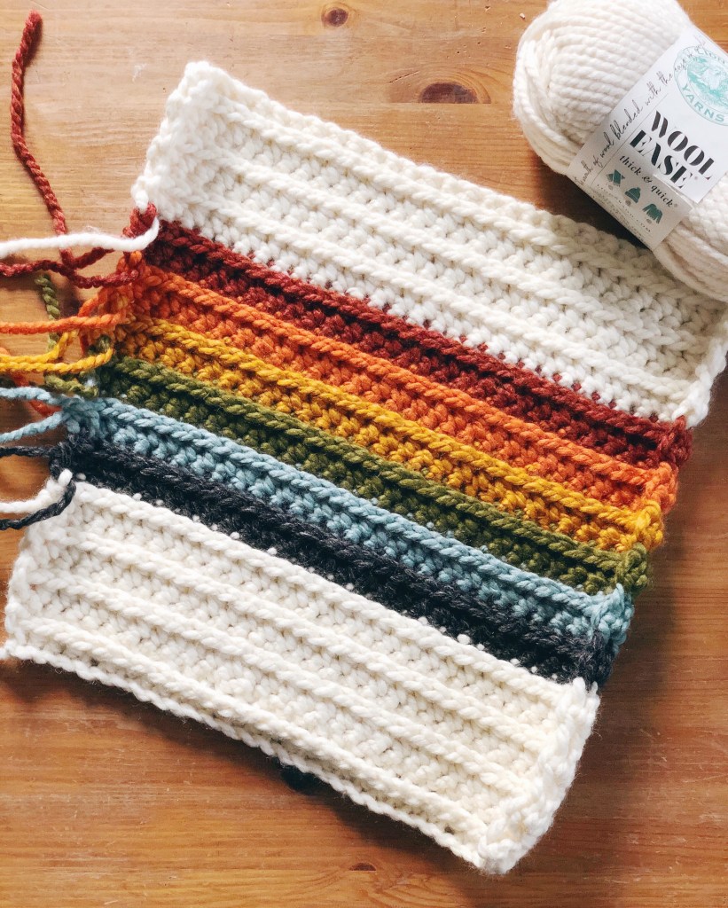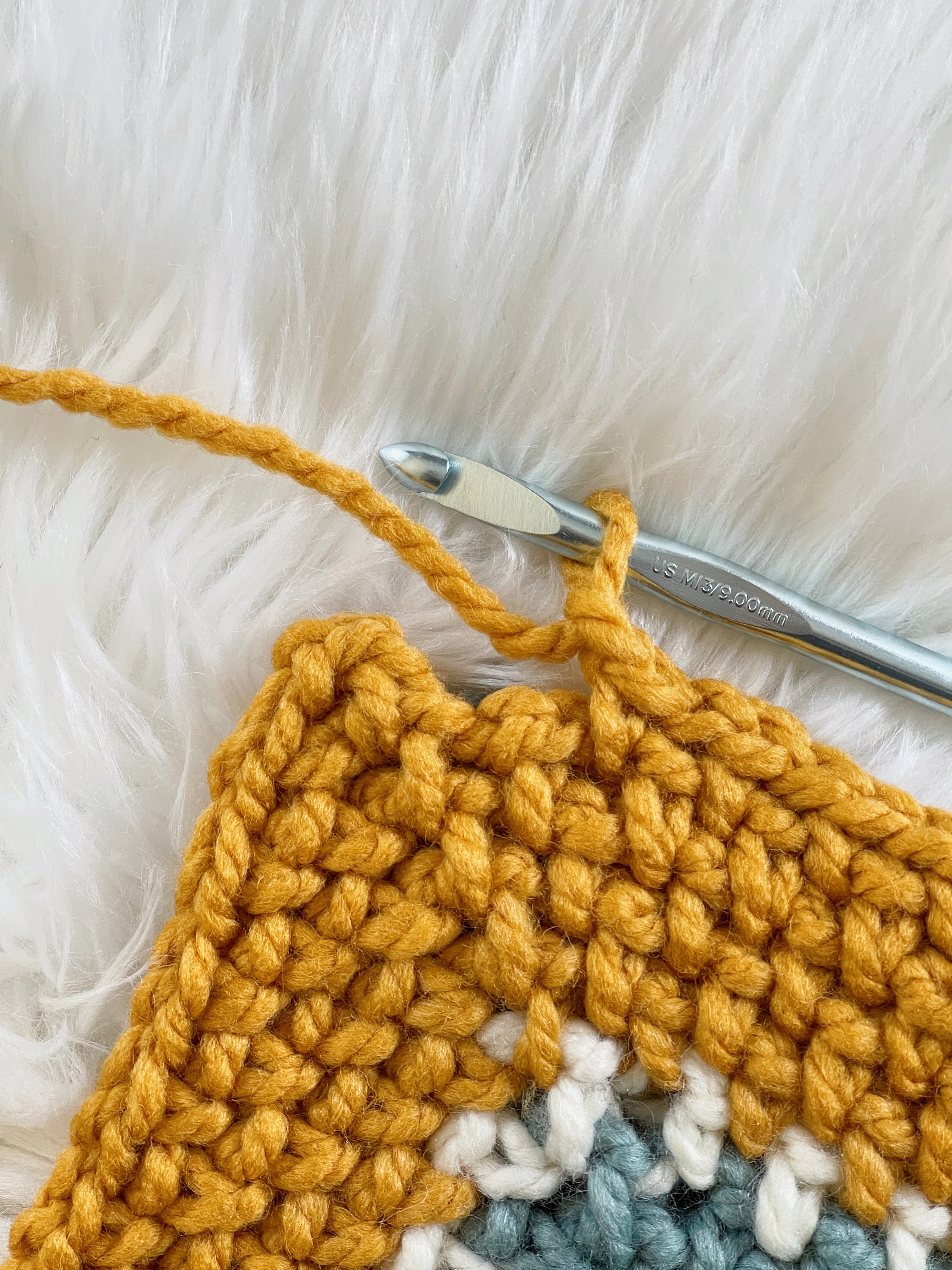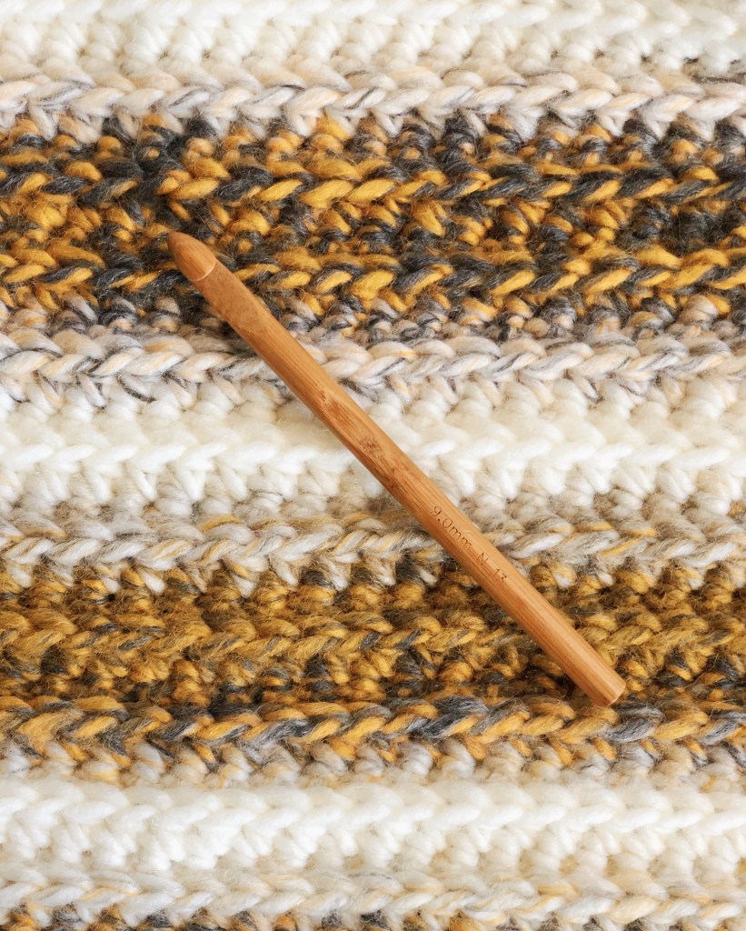 I used Chenille Home yarn from Michaels, and I highly recommend this yarn for this project, and any pillow project! The ends can be pretty sheddy, but once it’s worked up it feels so soft and squishy, but also pretty high-end and like a pillow you could buy at Target 😉.