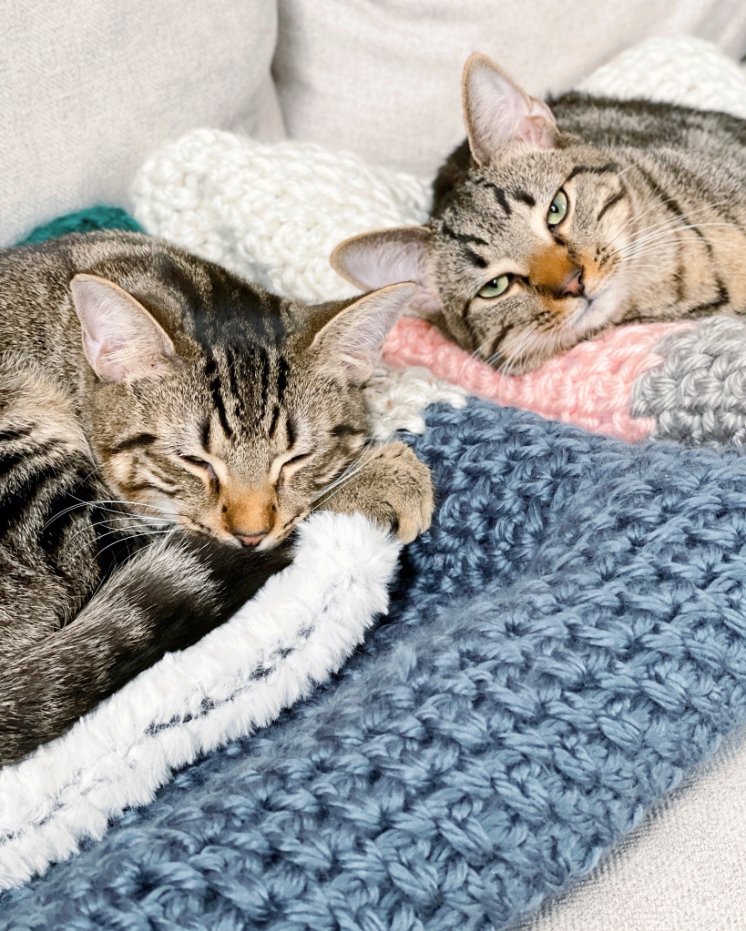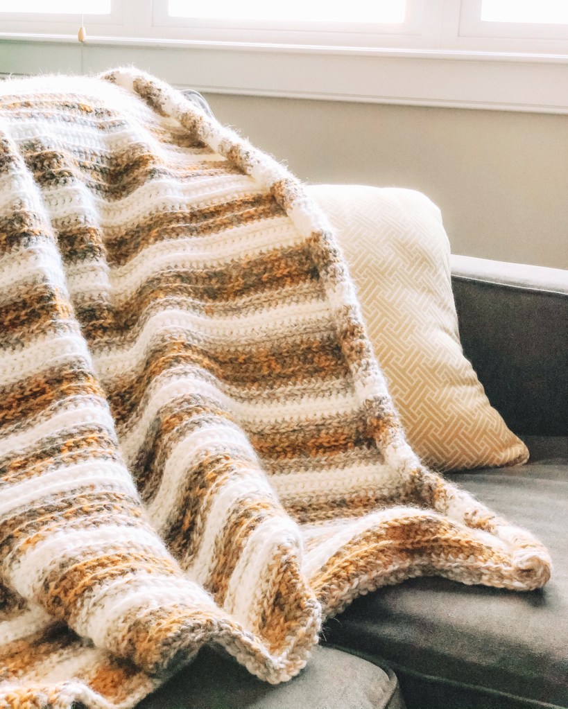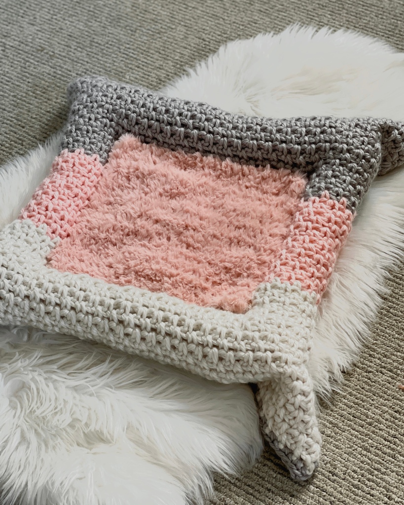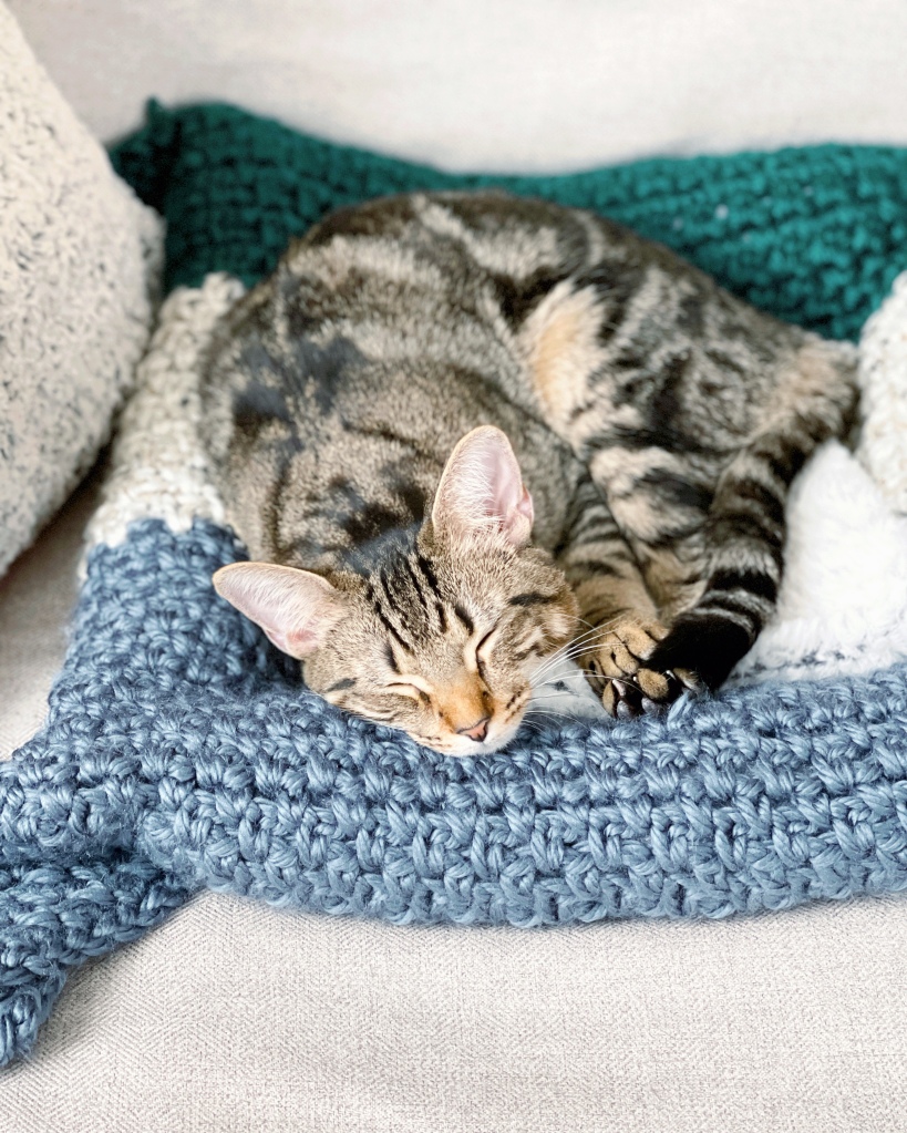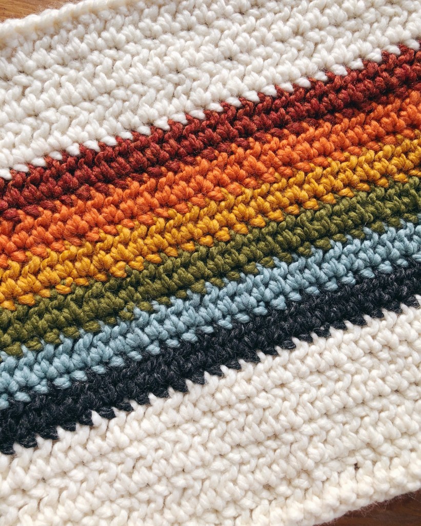 I used Chenille Home yarn from Michaels, and I highly recommend this yarn for this project, and any pillow project! The ends can be pretty sheddy, but once it’s worked up it feels so soft and squishy, but also pretty high-end and like a pillow you could buy at Target 😉.