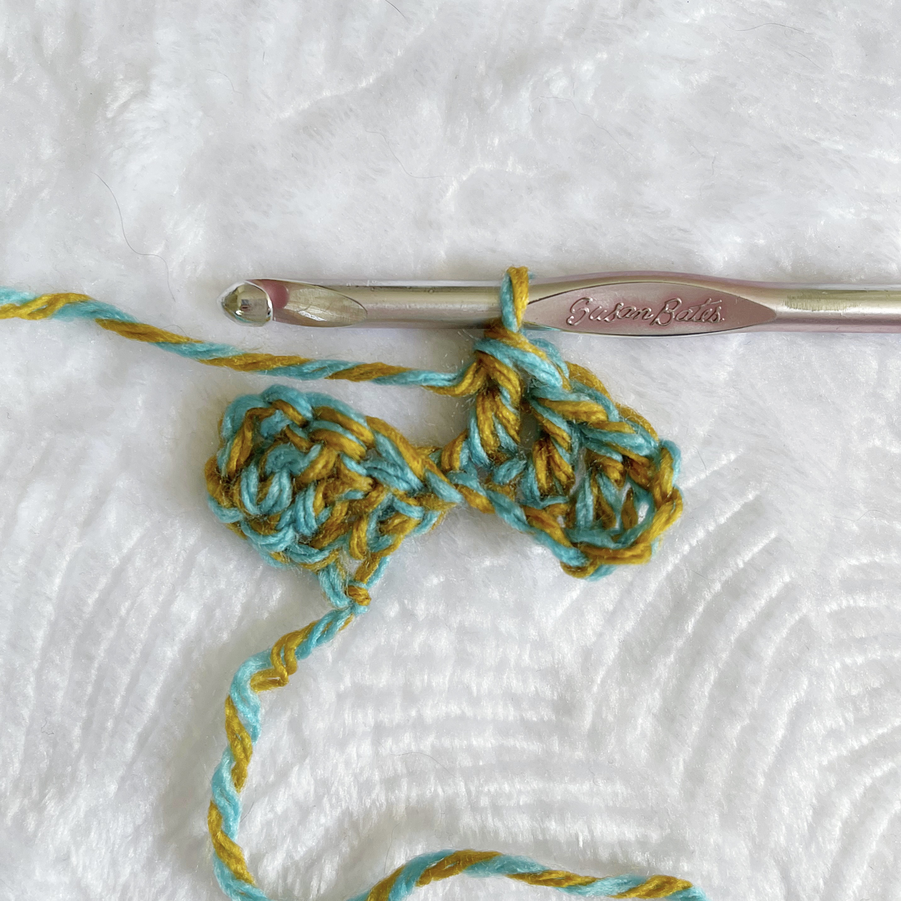 With Color B, start with MC. CH 1, SC 6 into MC. Do not join. (6)